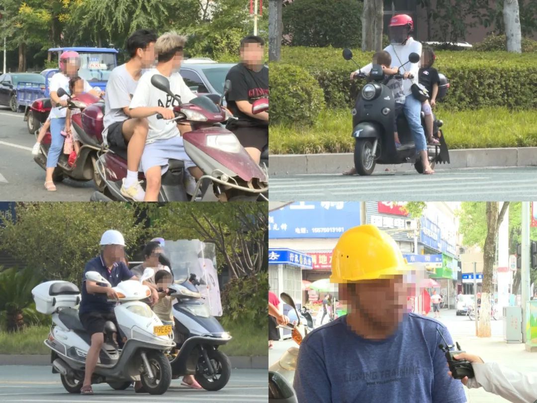 记者在现场看到,有摩托车驾驶人虽佩戴头盔,但并未系紧头盔带子,头盔的作用无法发挥;也有摩托车驾驶人佩戴工地安全帽,而并非摩托车专用头盔;在等待红绿灯时,一女子乘带两小孩,仅她一人佩戴头盔,两小孩均未佩戴头盔;另有两未成年男孩,驾驶摩托车并未佩戴头盔。