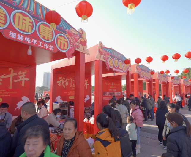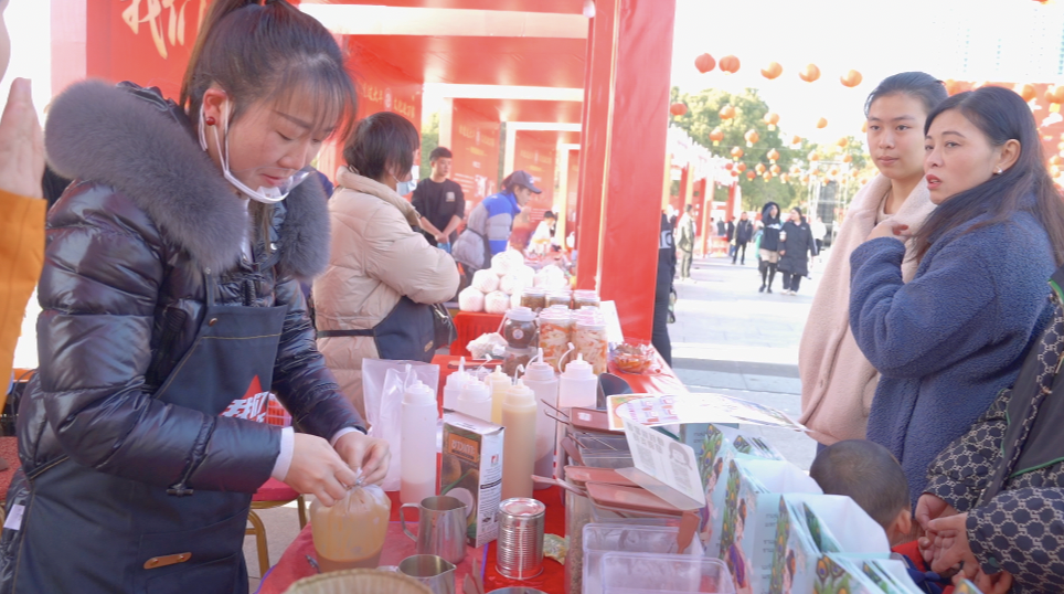 吃喝玩乐无一不有,来往人员络绎不绝,家长带领小孩子们在游戏区,排起了长长的队伍。现场一片欢歌笑语,红灯笼红帐篷带来浓浓的年味,洋溢着喜庆的迎春氛围,市民们享受了一场欢乐祥和的民俗文化之旅。