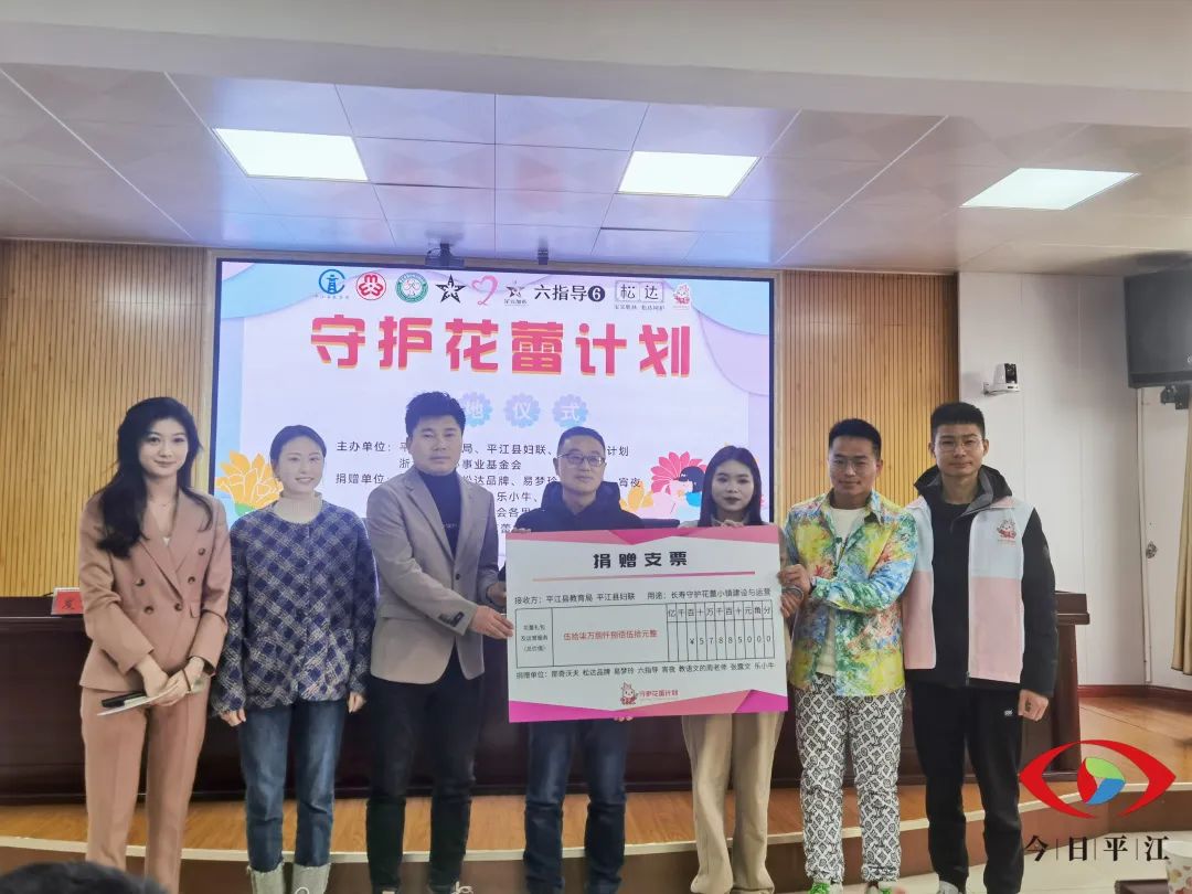 启动仪式上,县教育局和守护花蕾计划团队代表签署长寿守护花蕾小镇合作协议,随后,守护花蕾计划团队代表和捐赠方代表赠予县教育局和县妇联总价值578850元的捐赠支票,并共同为“长寿守护花蕾小镇”揭牌。