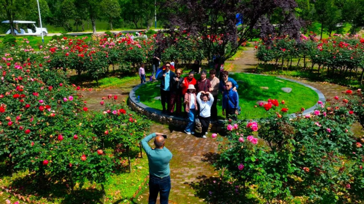 游客穿梭在林间,徜徉在花海