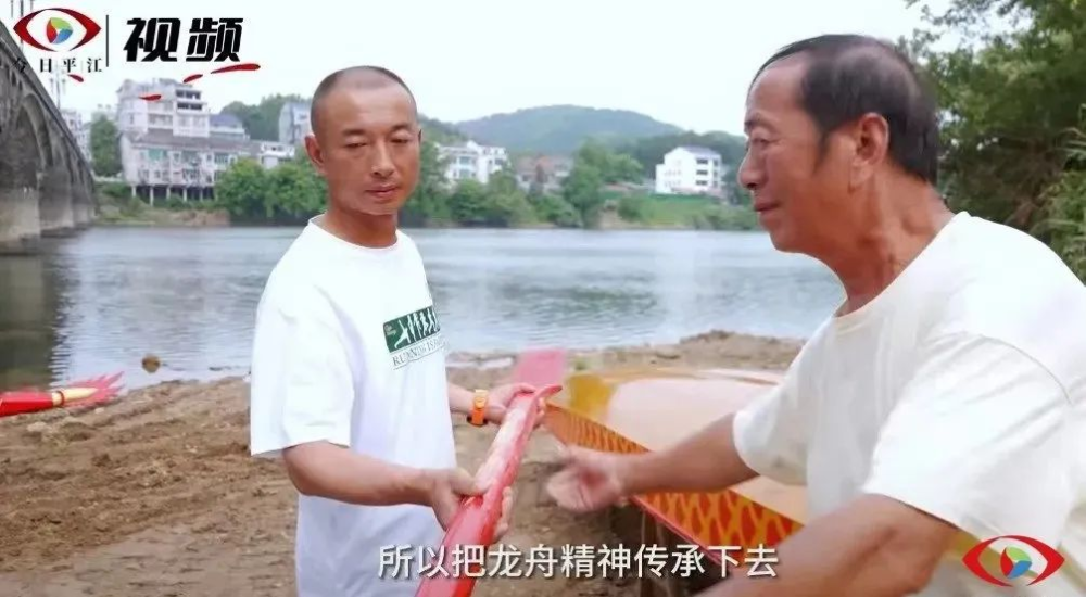 当记者问起彭浩游的比赛经历时,他滔滔不绝:“我们以前搞的是旱练,绑沙袋和树墩在桨上训练臂力,陆陆续续地去到湘阴、汨罗等地参加过比赛,取得最好的成绩是在国际龙舟赛上拿了第三名......”作为一名老舵手,彭六湘对儿子参赛寄予厚望,“比赛第二,安全第一。掌握好舵,保障队友的安全。”听父亲说着,彭浩游接过了他手中的船桨,仿佛也在寓意着浯口镇的后辈们,让龙舟文化得到了传承。