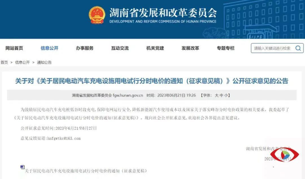 日前,湖南省于近日发布《关于居民电动汽车充电设施用电试行分时电价的通知(征求意见稿)》,其中明确,湖南拟自7月1日起,试行居民充电桩分时电价政策,试行期1年,引导居民充电桩用户错峰用电,在降低充电成本的同时,缓解“迎峰度夏”期间电力保供压力。