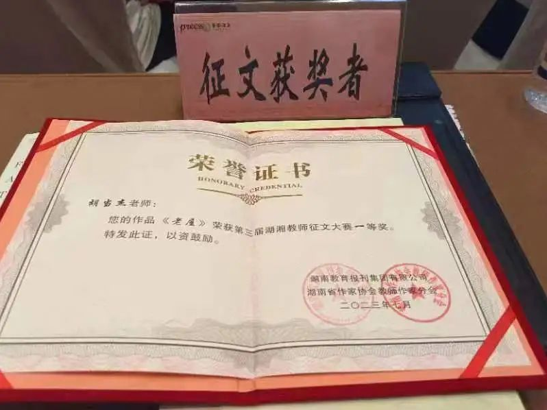 青年教师胡当杰小说《老屋》荣获一等奖!