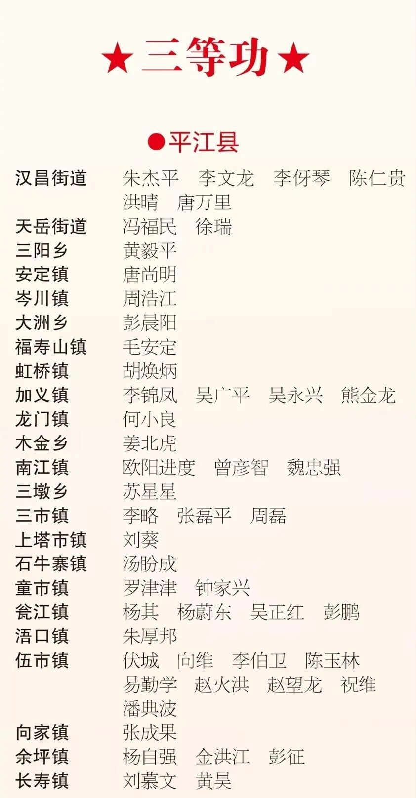 金戈铁马闻征鼓,前方喜报频传来。岳阳市退役军人事务局继续开设2023年岳阳籍立功官兵光荣榜,自去年“八一”建军节以来,奋进的平江籍官兵共有4人荣立二等功,51人荣立三等功。