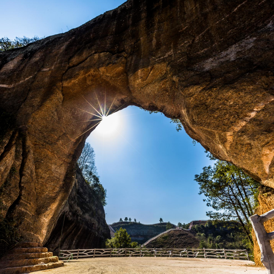 亦或是选择徒步山间,绕过红莲寺景观园,踏上环山的围栏栈道,驻足廊亭,眺望远方,黄彬将军题词的“红莲寨”三字,将昔日的金戈铁马,印刻在了石壁悬崖上。