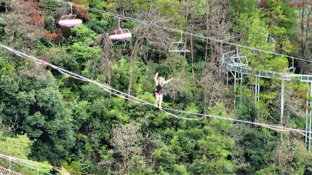 本次比赛场地设在红莲兵寨景区最开阔的峡谷之间,赛道总长度210米,高度80米,取中间150米作为有效竞速区,共吸引了中法两国近20名顶尖高空扁带运动员参赛。除了观看刺激的空中赛事,国内外扁带冠军还为现场的观众们带来的低空花式扁带表演,引来了大家阵阵喝彩。“我在体验区亲自走了一下,像走有弹性的独木桥,难度不小,趣味很足。”来自湘潭的李先生说这次近距离感受了平江的文旅体融合发展成果,让他印象深刻。