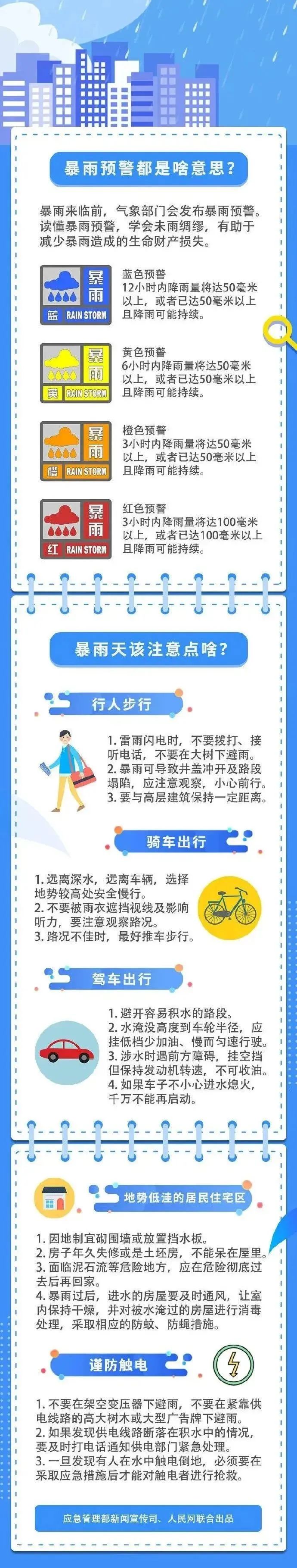 暴雨来了,不同的预警信号有哪些含义?又有哪些安全注意事项?快来了解!