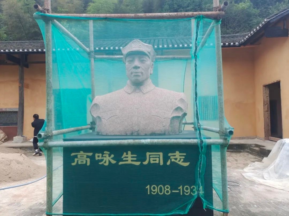 在老屋外面的院子里有一尊半身雕像,他就是革命烈士高咏生,从1934年改名咏生县,“咏生”这个名字一直沿袭至今。为什么是以高咏生为名?也许我们可以从高咏生短暂而辉煌的一生中寻找答案。