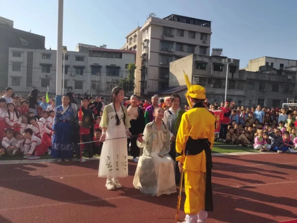 是少年少女们拉着红旗飞奔,舞完龙来又舞狮,床单都无法封印的跳舞之魂,现场还原“四大名著”。我说,你们的运动会还有多少惊喜是我们不知道的?