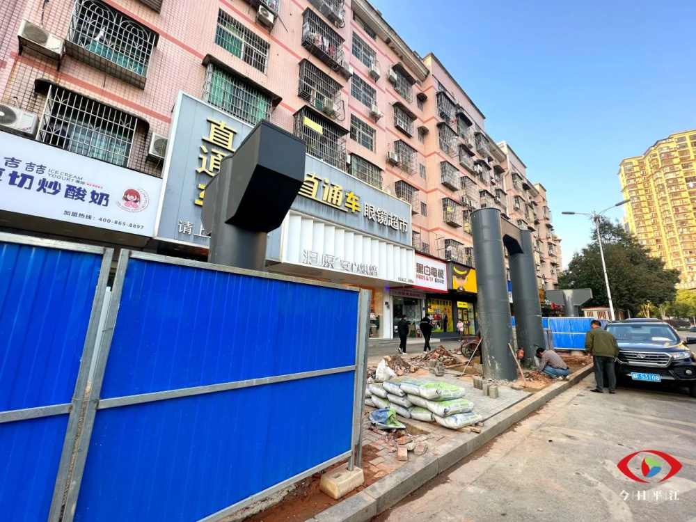 11月24日,记者来到东兴路平江一中前看到建设工人们正进行着。人行天桥的地面建设道路两边分别立着一个像门拱一样的黑色铁柱子,正等待着承接预制主体箱梁。那么,搭建好以后的人行天桥长什么样?这就带您一睹为快!