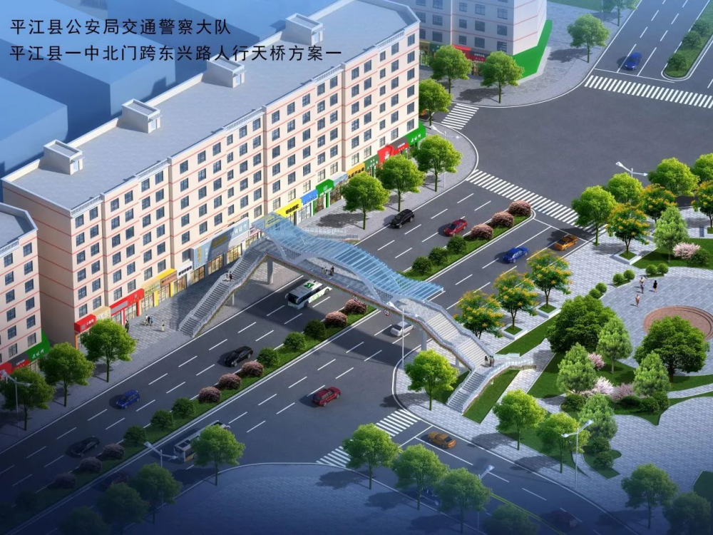 今年9月12日,东兴路平江一中前人行天桥项目开始动工。该人行天桥共有7个桥墩,主桥上部采用钢箱梁结构,下部采用桩柱式桥墩结构,跨径为29.2m,桥面总宽5m,桥下净空间不小于4.5m,桥顶设有顶棚,在美化外观的同时,还能起到遮光、避雨的作用。交警大队122中队副中队长张建雄告诉记者,目前项目已完成打桩工作,工人们正加班加点施工,预计今年11月底完工,考虑到过往行人车辆的安全问题,天桥预制主体箱梁将在晚上11点之后进行搭建。建成后,实现人车分流通行,将有效缓解高峰期交通拥堵情况,保障学生和过路行人的交通安全。