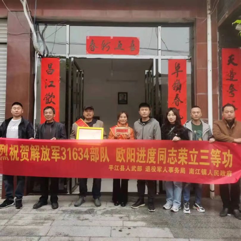 连日来,县人武部、退役军人事务局送喜报小分队奔赴南江、伍市、瓮江、木金等地,为近期平江籍立功受奖官兵集中登门送喜,让军人军属共享尊崇荣耀。