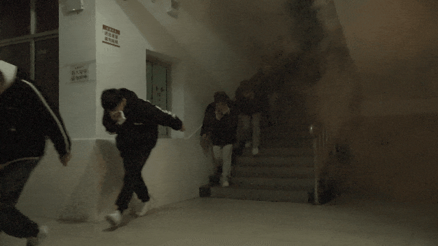 23日晚,平江一中警报声响起的第一时间,负责演练的教师迅速到达各自岗位,在各楼梯口指导学生快速安全地撤离。撤离过程中,寄宿生们用湿毛巾、衣物等物品捂住自己的口鼻、弯着腰,沿着学校指定逃生路线快速有序逃往安全地带。