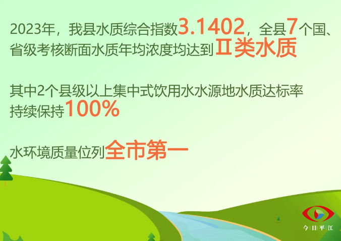 2018年4月25日,习近平总书记在岳阳考察时嘱托“守护好一江碧水”。六年来,平江以壮士断腕的决心、坚如磐石的定力、久久为功的韧劲,坚定不移走生态优先、绿色发展之路,以“平江之为”贡献“长江之治”。又到春潮激荡时。县融媒体中心推出《我家门前有条江》专栏,全方位挖掘和展现总书记重要讲话精神在平江大地落地生根的生动实践和丰硕成果,展现平江的母亲河——汨罗江的美丽蜕变。今日推出第二期——数说汨罗江。