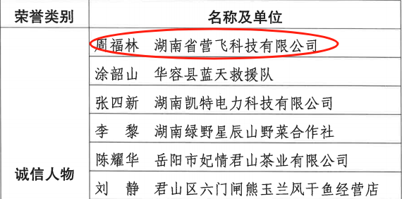 周福林是湖南省营飞科技有限公司董事长,曾获2022年平江县“诚信人物”等称号。