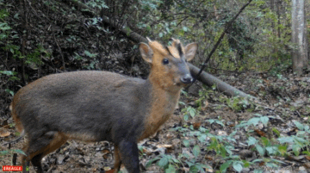 我是小麂,是小型鹿科动物,我们的叫声十分特别,听起来像小狗,这和我们家族的其他亲戚都不一样!