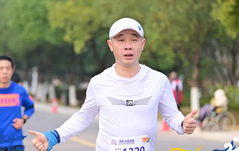 ▲图为彭怀多正在参加马拉松