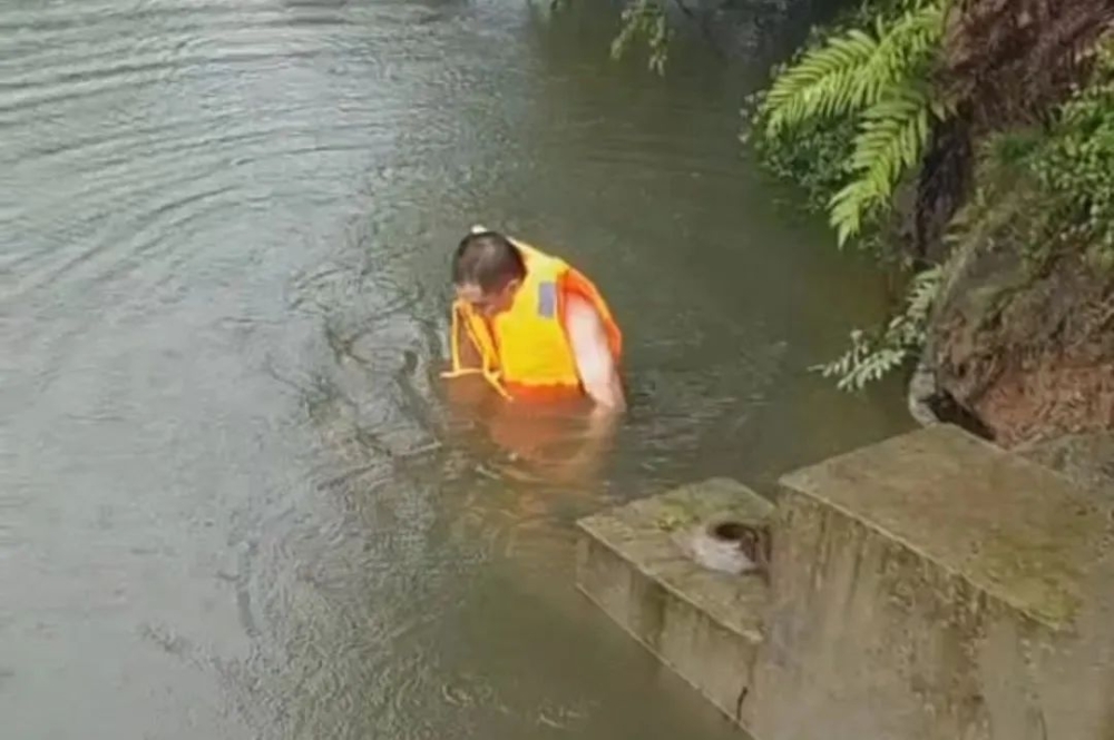 但山塘的排水口接近塘底,塘内的水位已有3米深,一同参加巡查的村干部邓非凡自告奋勇:“我会游泳,我可以潜下去开排水口。”说完就穿上救生衣,一个猛子扎进了山塘里,顺利地打开了排水口。