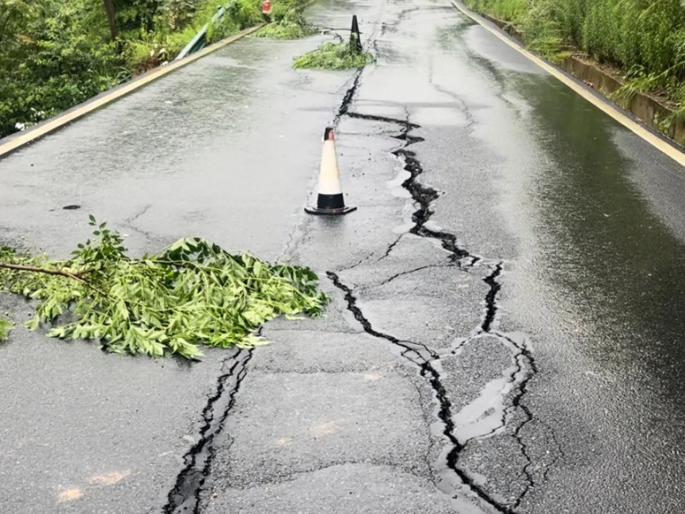 “水把边上的泥沙冲垮了,所以这条路开裂了。”洞下村村委会副主任毛文章告诉记者,“我们已经把这条路封起来了,提醒过路的群众走老路绕行,没有造成损失。”