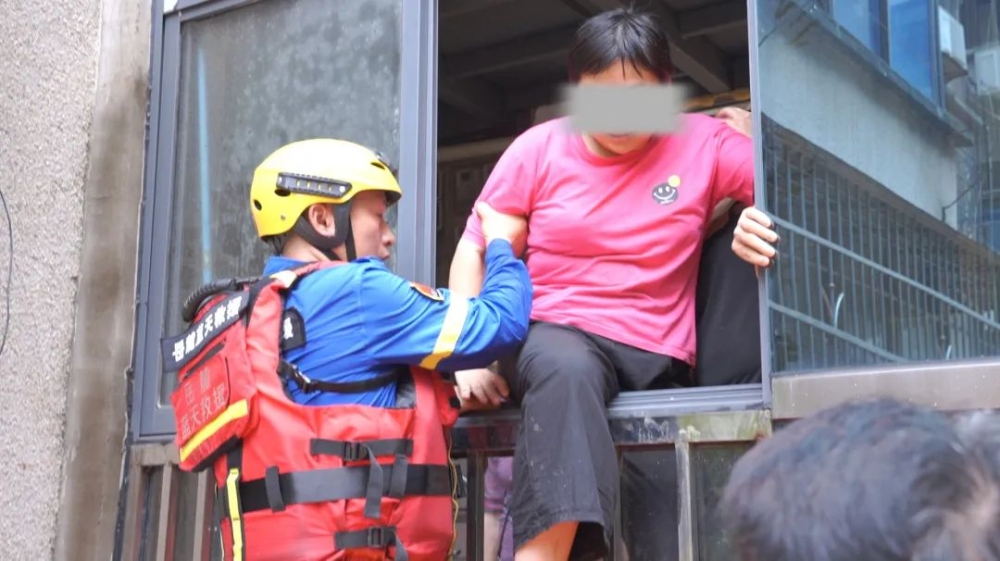 于是,救援队立即让童女士一起上艇,再次前往救援。到达后,童女士在救援人员的帮助下,从窗户爬进家里寻找,这才把母亲和妹妹带了出来。