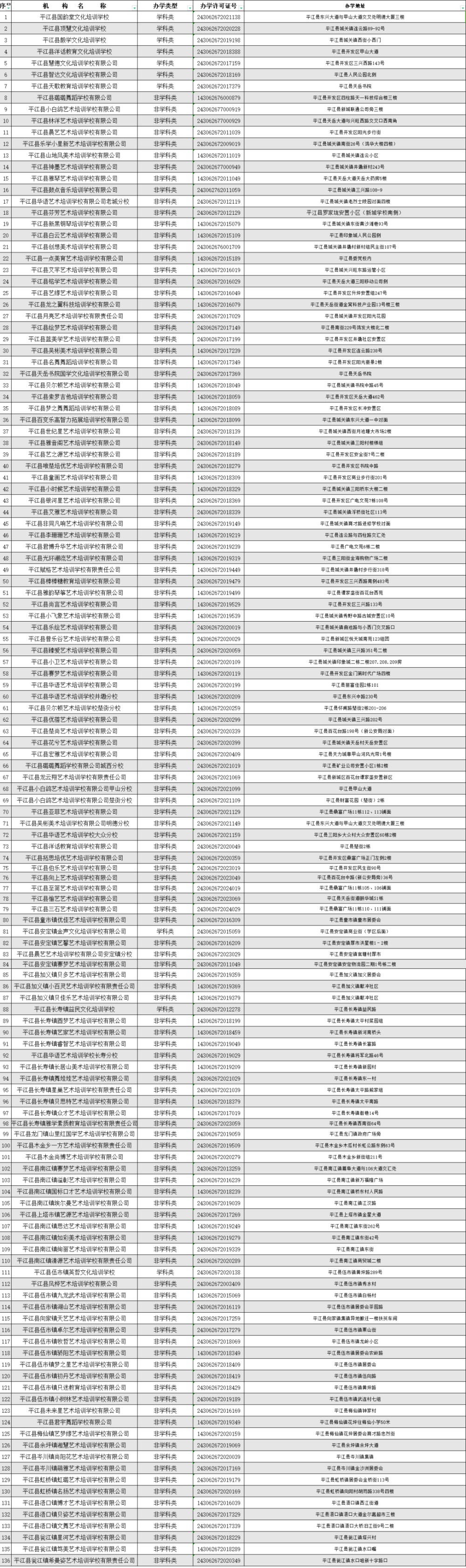 平江县入驻“全国校外教育培训监管与综合服务平台”校外培训机构“白名单”