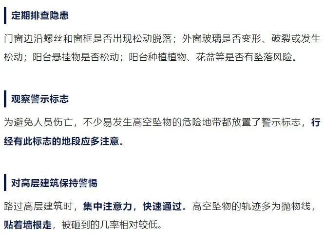高空坠物危害大,一旦发生意外,应立即拨打120急救电话。