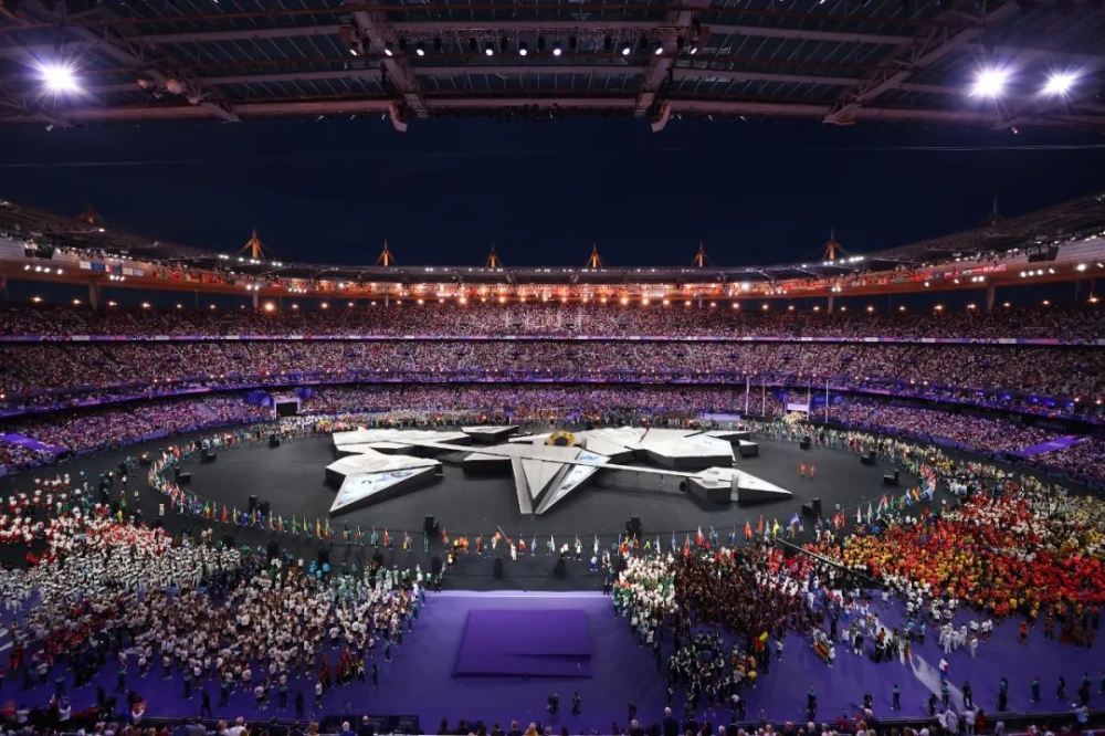 与开幕式在塞纳河上举行的流动的盛宴不同,闭幕式的整个过程,在法兰西体育场内,回归传统呈现方式进行。