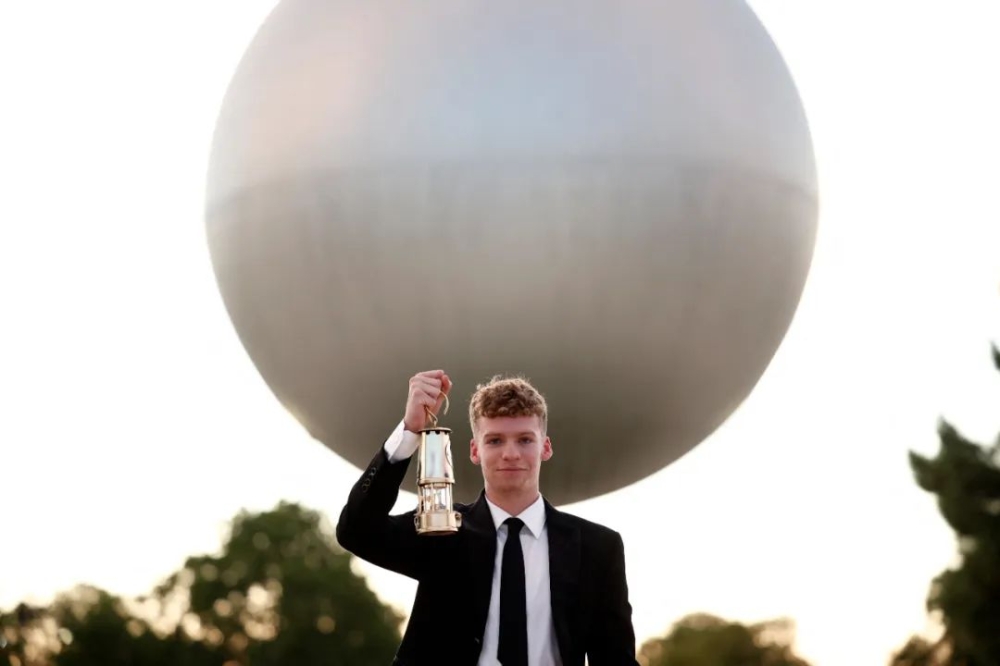 闭幕式一开始,随着奥运圣火缓缓熄灭,法国游泳运动员马尔尚护送保存下来的圣火火种,前往法兰西体育场。