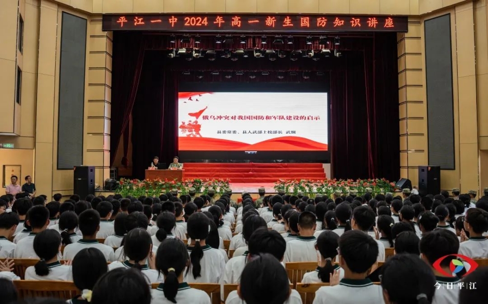 ▲8月26日,县委常委、人武部长武纲在平江一中开展2024年高一新生国防知识讲座。
