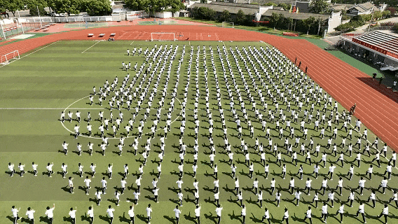 刚刚步入高中的新生们对这些动作并不熟练,他们头顶烈日、挥汗如雨,步伐虽不齐整但足够坚定,脸庞稍显稚嫩神情却格外坚毅。一颗坚持的种子,悄悄在心中生根发芽。