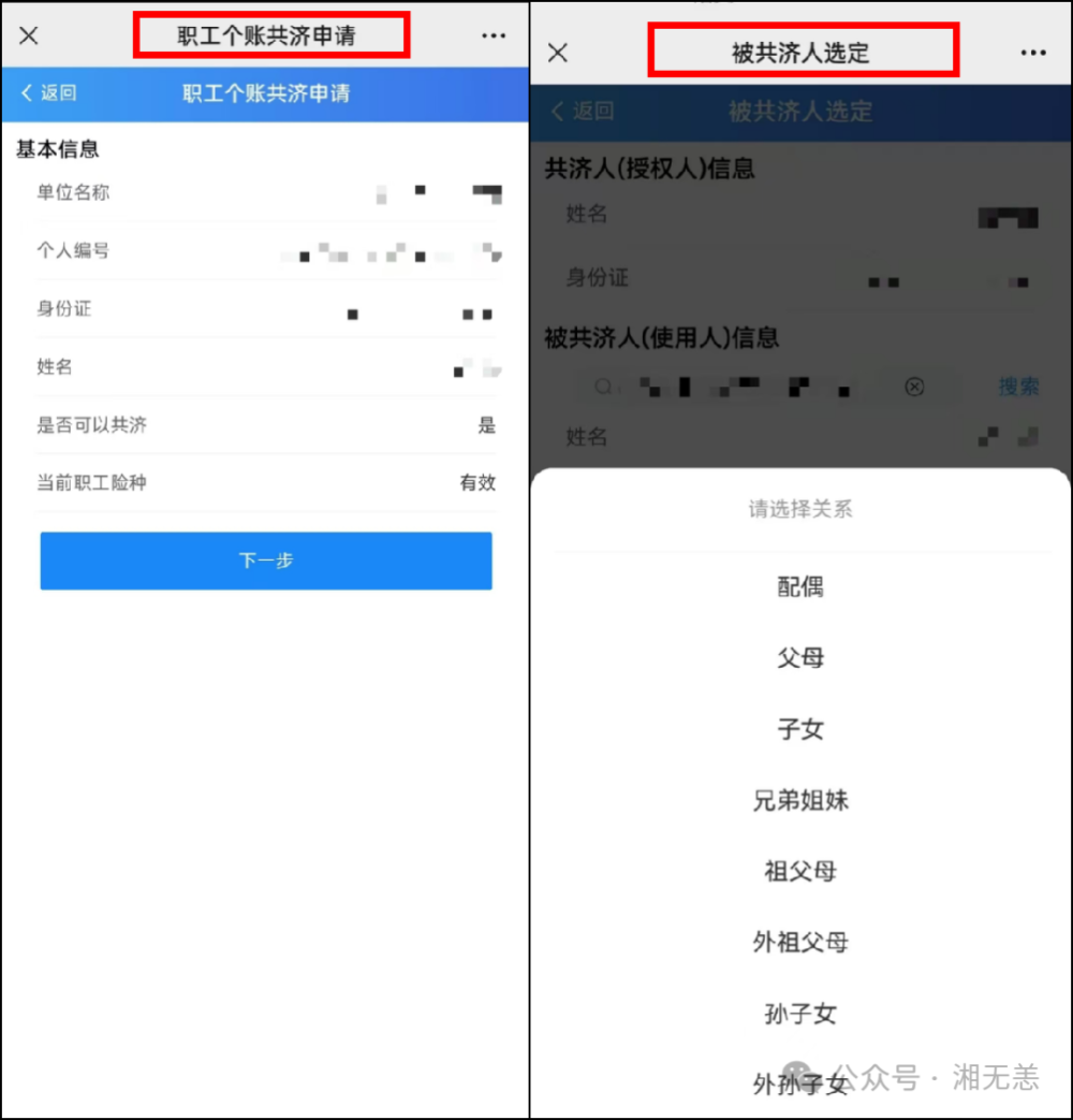 2024年9月1日起,2025年度居民医保参保缴费工作正式开启。除了大家熟悉的“湘税社保”缴费渠道外,还可以使用参保职工的个账余额为近亲属(范围:配偶、父母、子女、兄弟姐妹、祖父母、外祖父母、孙子女、外孙子女)代缴居民医保费。操作步骤如下: