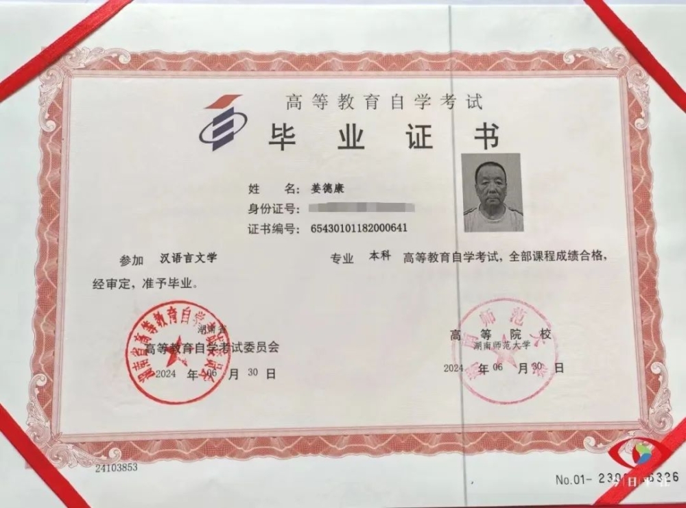活到老学到老!我县虹桥镇这位77岁的姜德康老人,用自己的行动印证了这句话。历经6年,他成功通过了28门专业课程,在73岁时拿到大学专科文凭,今年又成功拿到汉语言文学本科毕业证。