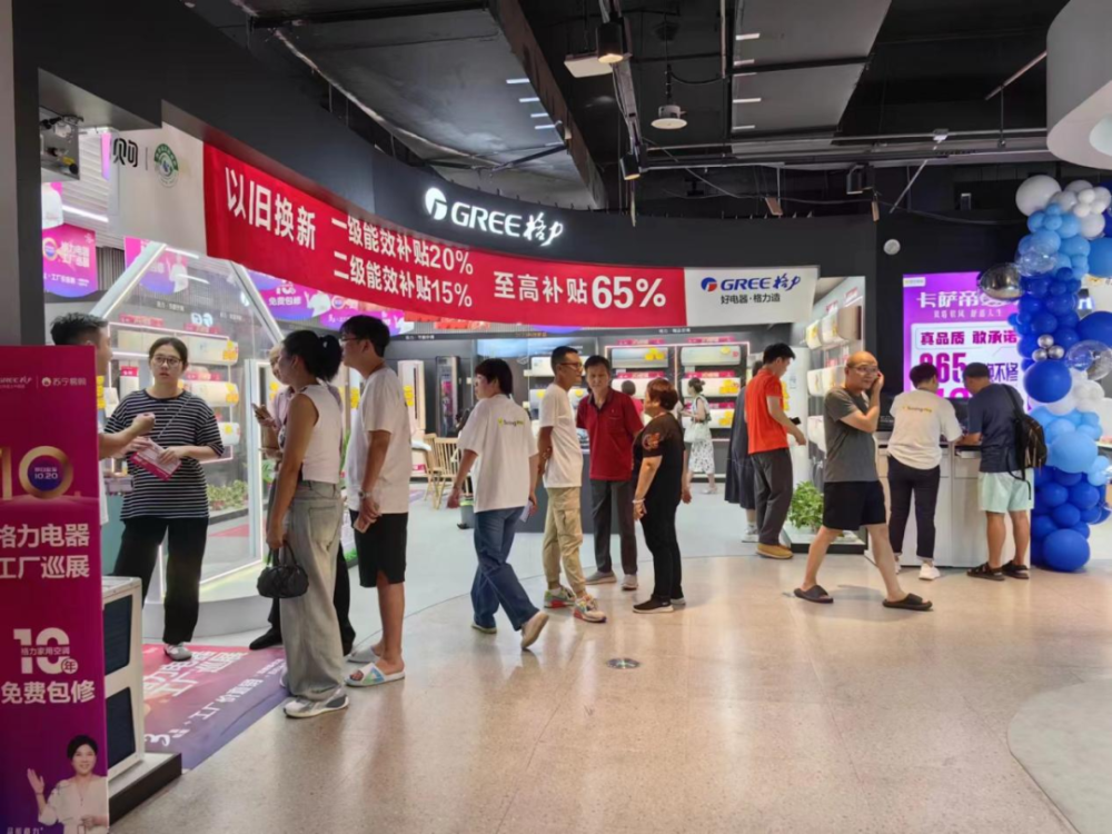 自家电以旧换新政策实施以来,湖南家电消费市场十分火爆。图为通程电器长沙东塘店,消费者正在排队买单。