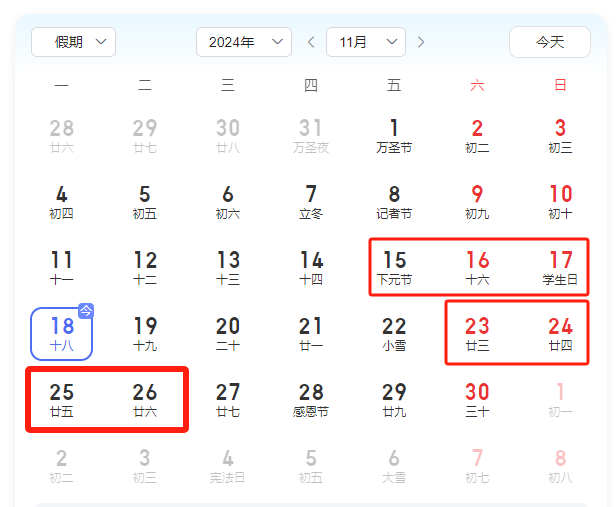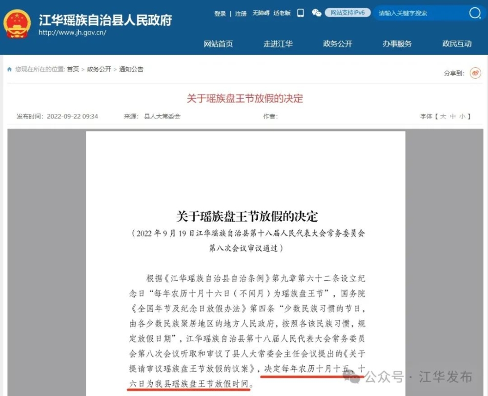 瑶族盘王节,放假时间为每年农历十月十五、十六,今年公历为11月15日、16日。江华瑶族自治县成立纪念日,放假时间为每年公历11月25日、26日。