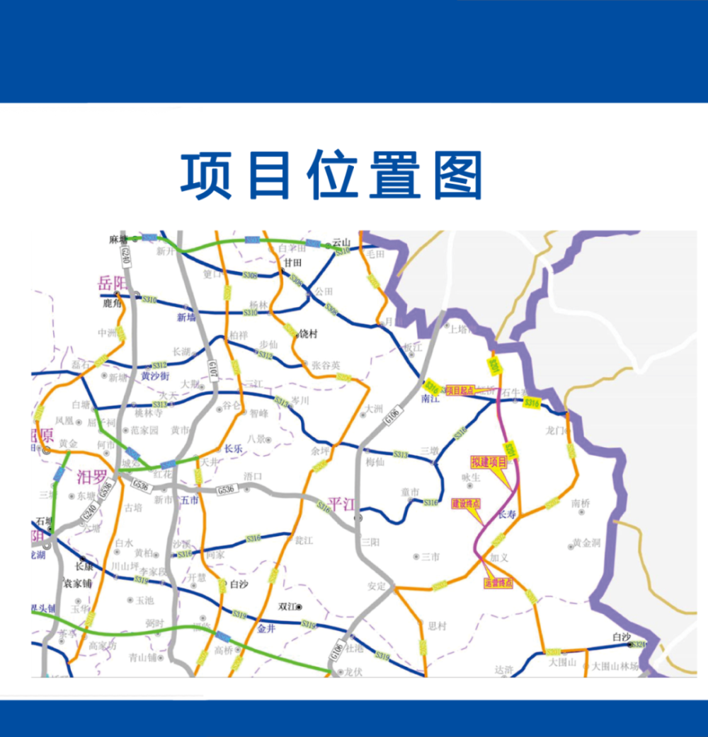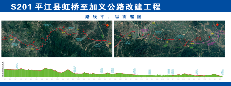 S201平江县虹桥至加义旅游示范公路项目,起点位于虹桥镇北侧的圳上顺接S201,途经虹桥镇、木金乡、长寿镇、加义镇4个乡镇,建设终点位于石林岩与平益高速加义连接线相接。项目全长38.493km,全线采用二级公路标准设计,并在沿线添加旅游景观设计。