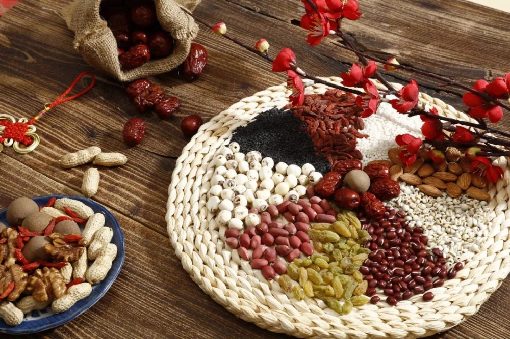 腊八粥的讲究真不少,红枣、莲子、核桃、栗子、杏仁…精致的做法要用二十多种食材,人们常常从前一晚便开始忙活,洗米、泡果、剥皮、去核、精拣…从夜里微火慢煮一直要熬到腊八清晨,大功告成后,满口香甜,令人难忘。
