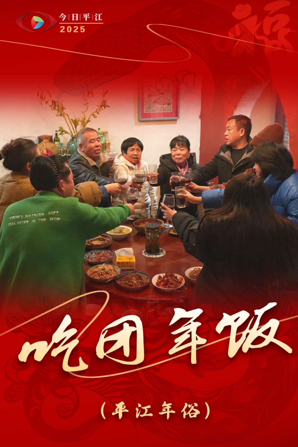 接下来,当然是春节的重头戏——团圆饭啦!对中国人来说,过年的仪式感,就是家人团圆。香喷喷的年夜饭前,家人围坐谈笑,席间升腾起的不仅是桌上的佳肴香气,更是独属于家庭的温馨与幸福。吃完年夜饭后,人们会聚在一起聊天、看春晚,终日不眠,一起等待天明,迎接新年的到来。而辞年则是平江小孩最喜欢的习俗之一。除夕这天,家家户户都早准备了丰厚的年货和压岁钱,等着孩子们来辞年。成群结队的小朋友衣着喜庆,走进家门就高声说:“恭喜你过个热闹年!” 主人家就会热情地将零食、红包逐个分发给他们。
