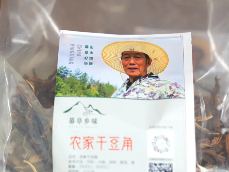 坐落于南江镇中心的桥东村,背靠巍巍幕阜山,这里的农产品都浸润着山泉的灵气,所以主播跟村民们常用的“直播话术”就是:“这些都是幕阜山泉水冲洗/制作的。”采访时,邹婆婆热情邀我品尝了她亲手制作的萝卜干跟绿豆粉皮,一打开袋子就香味扑鼻,粉皮干吃都很好吃,应该确有幕阜山泉水的助力。