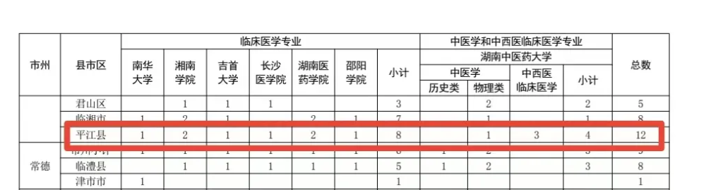 2025年我县定向医学生招生计划为12人,其中,临床医学专业招生8人(物理类)、中医学招生1人(物理类)、中西医临床医学3人(物理类)。临床医学专业培养高校及招生计划为:南华大学1人、湘南学院2人、吉首大学1人、长沙医学院1人、湖南医药学院2人和邵阳学院1人。中医学和中西医临床医学专业培养高校及招生计划为:湖南中医药大学4人。上述招生计划均纳入各培养高校年度招生总计划。