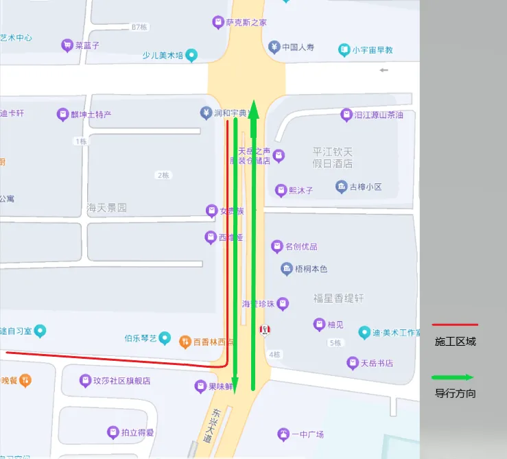 花溪巷:启明路花溪巷口至西街花溪巷口施工段:(全幅分段封闭施工),时间:7月4日至8月15日