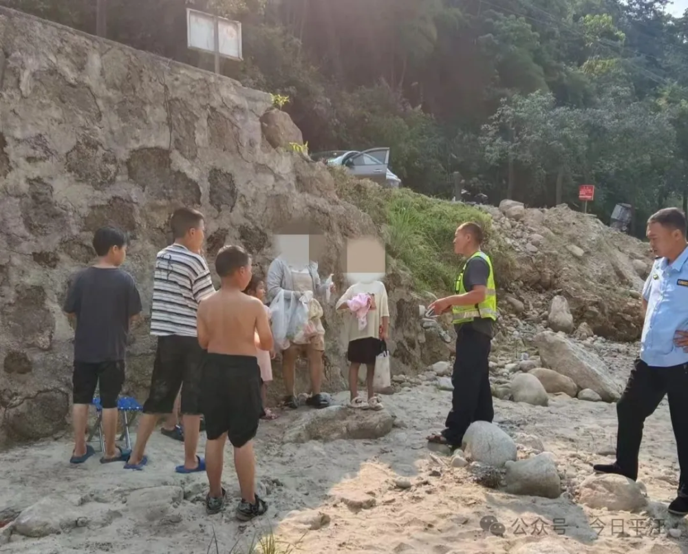 7月7日,加义镇派出所民警在对辖区内景区的野生水域开展拉网式排查和日常巡逻工作,发现芦头河溪水边有4名未成年儿童在游泳。