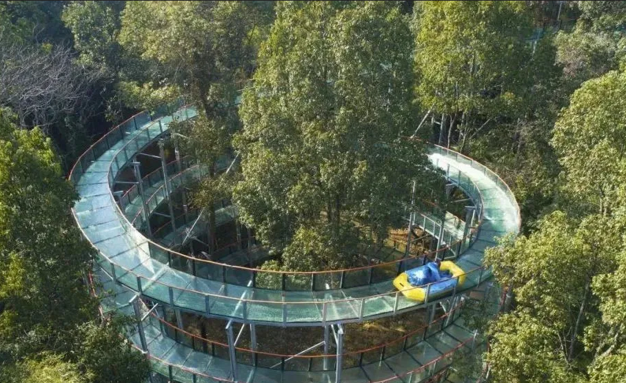 加义镇芦头村的森林玻璃云漂,8分钟带你开启奇妙之旅!3000米滑道布满S弯、C弯与360°急转,疾驰间感受速度激情,俯瞰脚下溪水奔流、草木葱茏,在林间凌空穿梭,尽享身心双重放松。