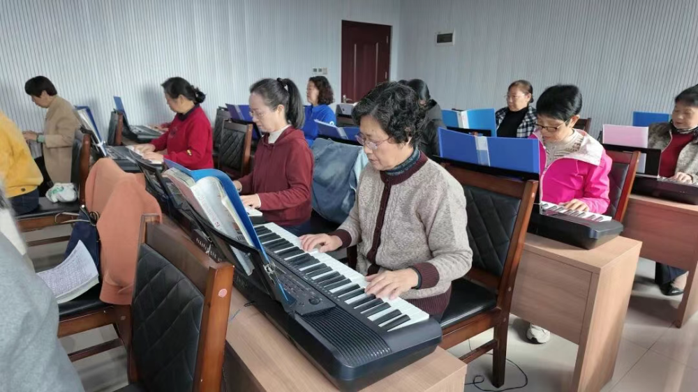 另一边,电子琴教室,《我们的生活充满阳光》旋律悠扬。六十五岁的陈奶奶手指熟练,神情专注。“退休后才从零学起,如今已能弹奏完整曲子。”她笑着说,学琴为她的退休生活带来了全新的追求。