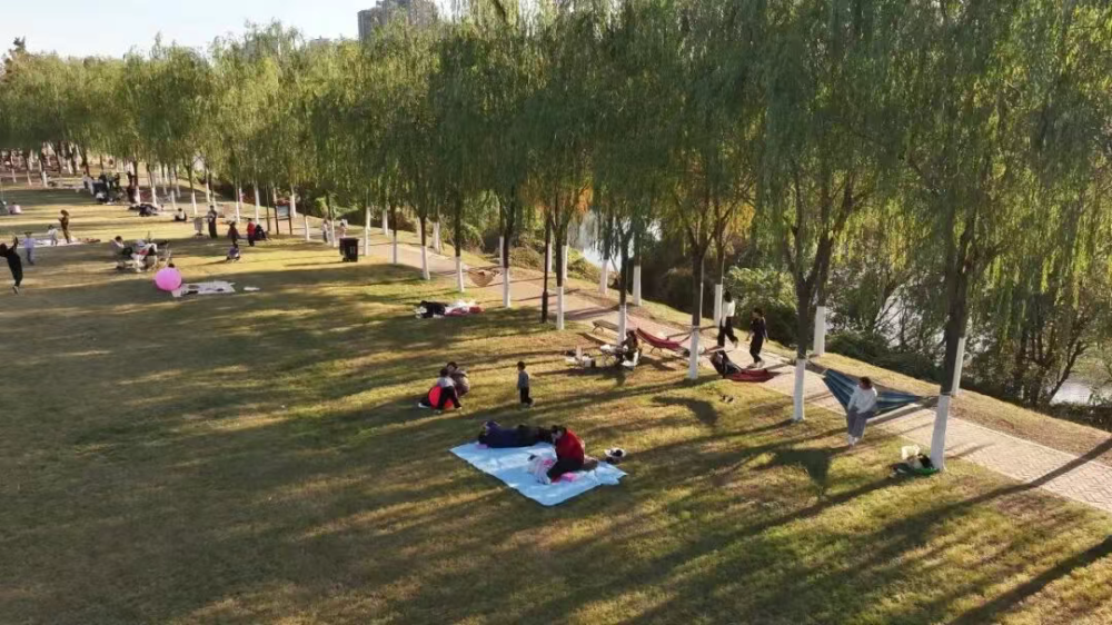 如今,这条风光带已成为平江人休闲放松的首选地——夏天,这里是乘凉嬉戏的乐园;冬日晴好时,沿江的草地上总能见到三五成群晒太阳、休闲野餐的市民。城市的“光”与“绿”,就这样自然而然地融入日常,照映并滋养着普通人的幸福感,也让“宜居”二字变得可感可及。