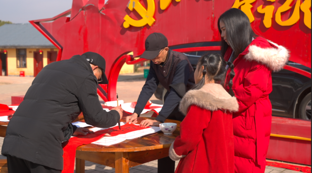 你听,那是毛笔划过红纸的沙沙声。老人家凝神挥毫,“门迎春夏秋冬福”。浆糊混着墨香,贴上的不仅是对联,更是对来年的祈愿。