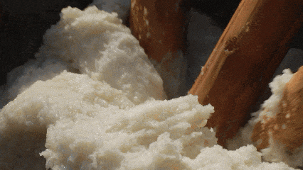 进了腊月,岑川的年味,是从祠堂前那“砰、砰”的闷响里醒来的,那是打糍粑的声音。老人常念叨:“糍粑圆,打完才过年。”这话不假。打糍粑是年前最热闹的集体活。腊月二十五前后,祠堂前那口被磨得光亮的石臼就忙开了。蒸得透亮的糯米倒进去,热气直往上冒,几个汉子围上来,抡起木槌,“砰、砰”地捣起来,你一槌,我一槌,慢慢的,米粒黏成了一团,变得又绵又韧。这软糯香甜的滋味,是年最先到来的信儿。
