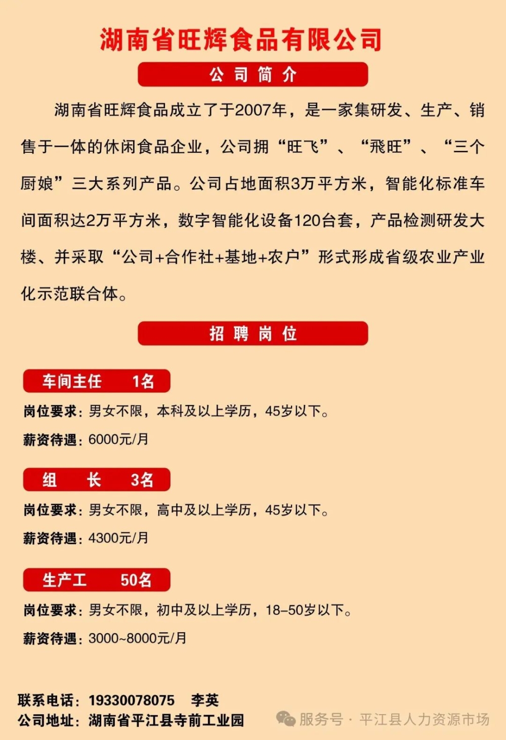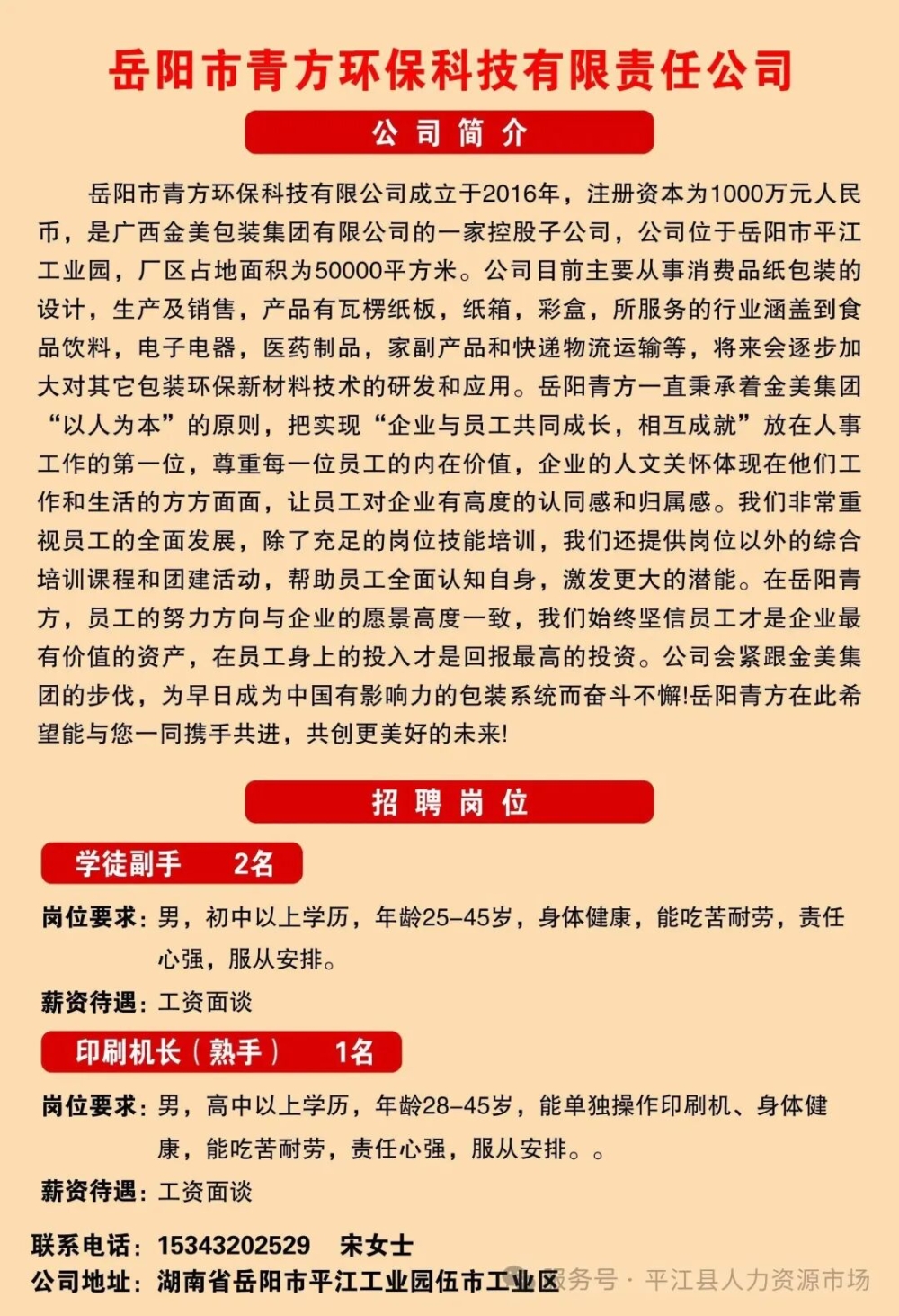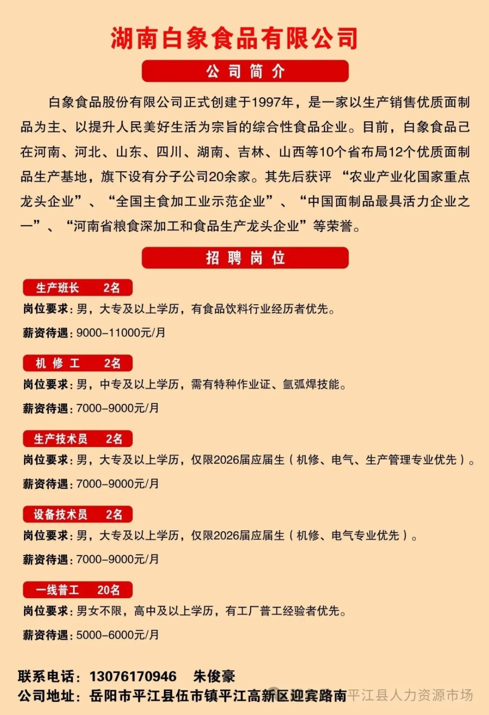 2026年春风行动来了!平江将于2月26日(正月初十)上午9:00-12:00,举办2026年“春风行动暨就业援助季”现场招聘会。本次招聘会汇聚了62家优质企业,现场提供就业岗位5405个。