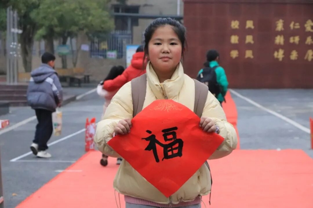 木金乡木瓜中学的校园张灯结彩,“策马逐梦”打卡墙吸引师生纷纷签名留念,教室布置得温馨暖心。