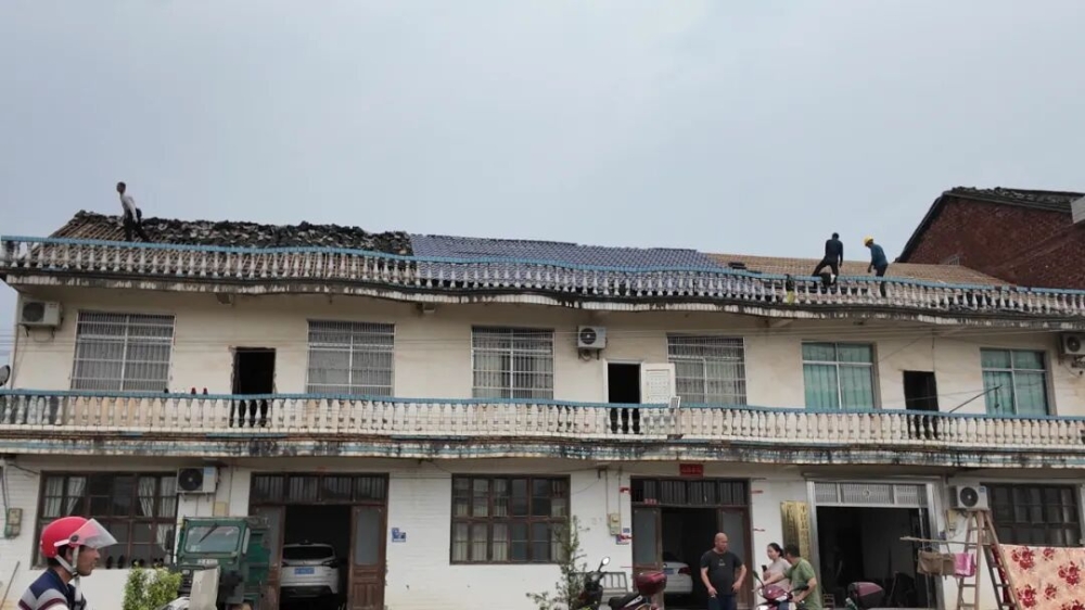10日上午,记者走进受灾最严重的谢江村,沿河而居的农户房屋屋顶瓦片几乎全部受损,有的屋顶甚至出现较大破洞。但眼前的景象并非一片狼藉,而是一派忙碌的重建画面——暴雨初歇,村民们便抓住这间隙,纷纷爬上屋顶,小心翼翼地换下被冰雹砸碎的瓦片,再一片片铺上新瓦,“叮叮当当”的敲击声此起彼伏,奏响了灾后重建的序曲。