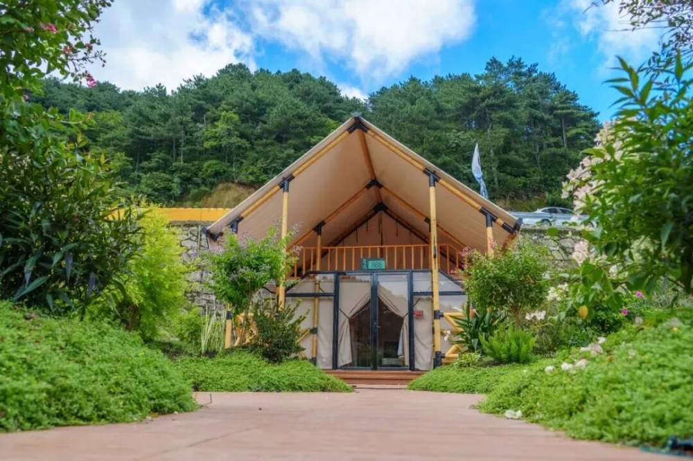 天岳云端轻奢露营酒店是湖南首个坐落在海拔1596米之上的综合性露营酒店,位于国家AAAA级旅游景区天岳幕阜山内。营地分为露营区、休闲娱乐区、综合服务区,有星空充气帐篷、酒店式帐篷、花园复式帐篷等多种选择。可以享受云端音乐会、追风市集、山顶烧烤、微醺酒局等多种文娱活动,也可以在景区观日出、赏日落、拍星空,做一场云端的梦。